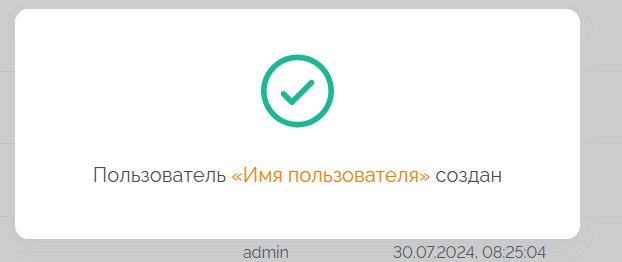 В модальном окне, о том, что пользователь создан, вместо Имени пользователя, которое было задано, показывается "Имя пользователя".