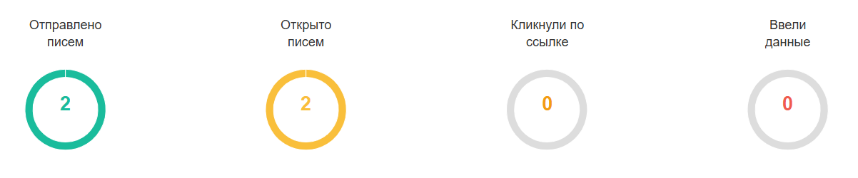 На странице результата кампании круговые диаграммы имеют английские названия.